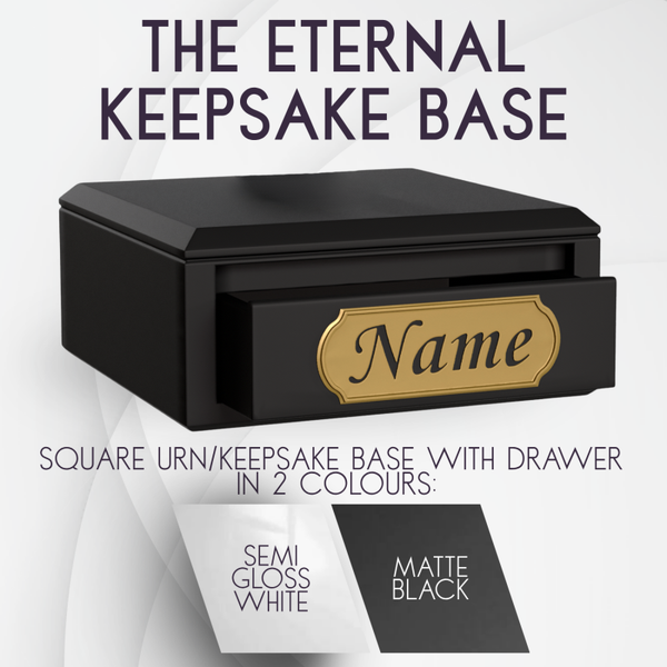 Standard Base: Every bust comes mounted on a specialized Urn/Memorial/Keepsake Drawer Base, available in Matte Black or Semi-Gloss White.
