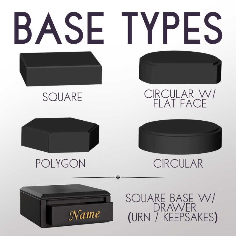 Note: If you choose Resin for the sculpture, the urn base will still be PLA for strength, however standard bases will be in Resin